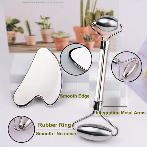Package includes: 1*Stainless steel roller, 1*Stainless steel guasha board, 1*Instructions